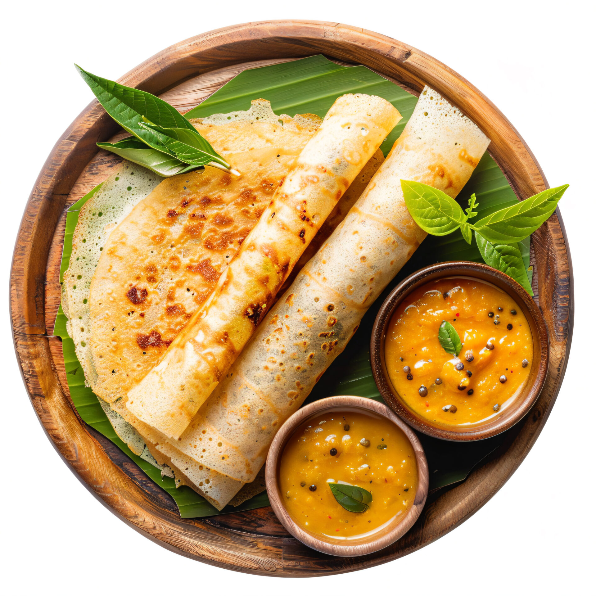 Crispy dosa stuffed with spiced potato filling, served hot.