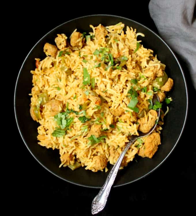 A comforting South Indian rice-lentil dish with ghee and spices.
