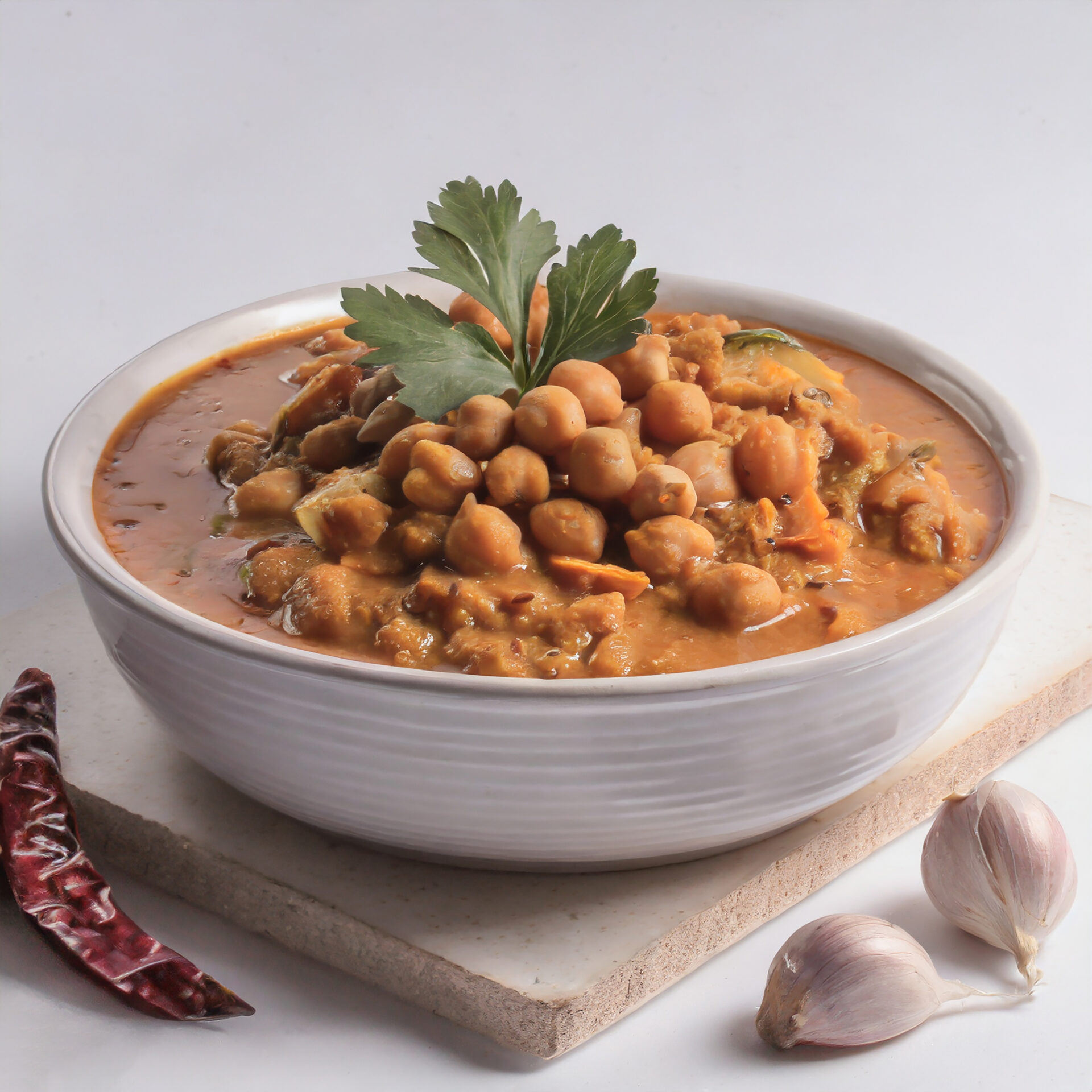 Spicy chickpeas with fluffy fried bread.